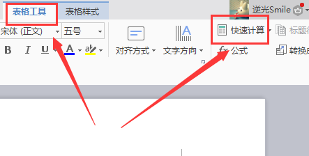然后在最顶端的菜单栏里面找到【表格东西】,在找到里面的【快速计较】。前面画了一个小的计较器图标,可以说很形象了。
