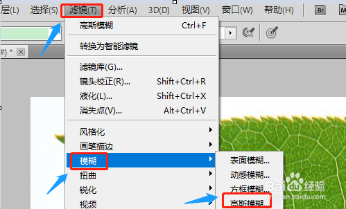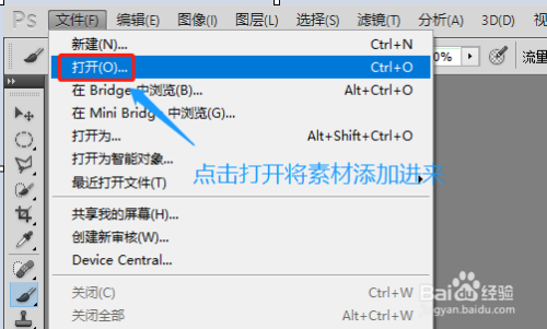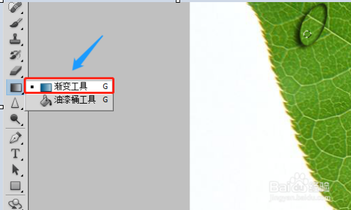 打开PS软件今后,我们点击左上角的“文件”-“打开”,然后将图片素材添加进去,好比小编的素材是一片绿叶;