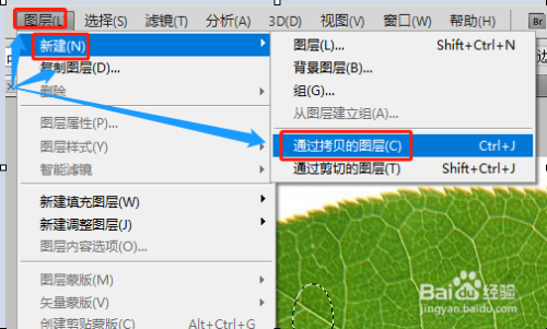 我们注重到绿叶上面自己是没有水珠的,此时点击左侧东西里的"椭圆选框东西",在绿叶的肆意位置画一个卵形,然后依次的东西栏点击“图层”-“新建”-“经由过程拷贝的图层”