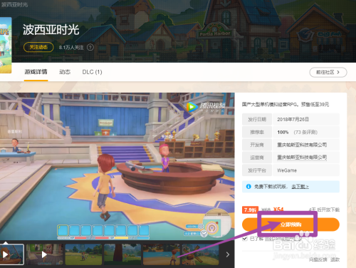 进入游戏介绍,点击右下角的【当即预购】