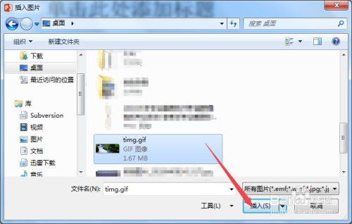 然后在打开的窗口中找到要插入的动态图,选中它,点击插入按钮。