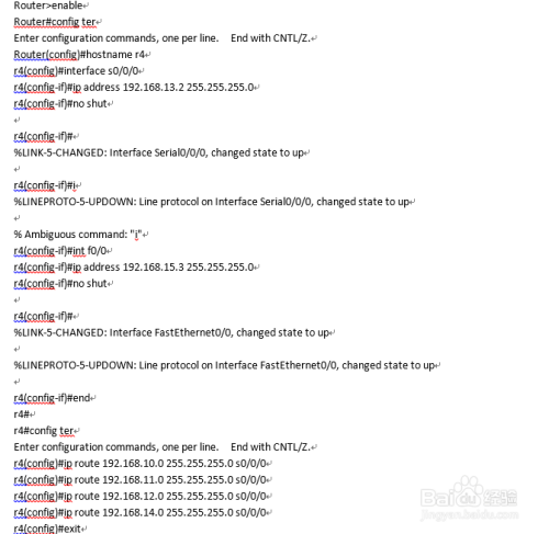 3) 路由器R4的f0/0端口上接本家儿机PC4