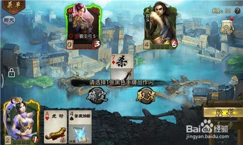 赵飞燕可以用一张黑色的牌来看成闪,与赵飞燕的玉步技术相对应,可以很好的进行遁藏。