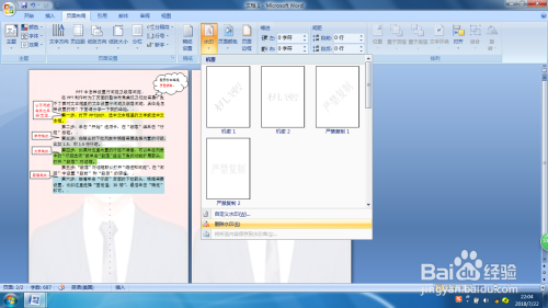 第六步:【水印】有时页面布景色可能是水印,断根水印的方式:在Word2007中打开文档,单击“页面结构”选项卡,在“页面布景”组中单击“水印”按钮,在睁开的下拉列表中单击“删除水印”即可。