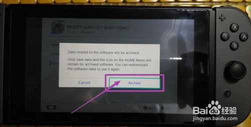 提醒是否要删除该软件(游戏),点击【Archive】(决议)