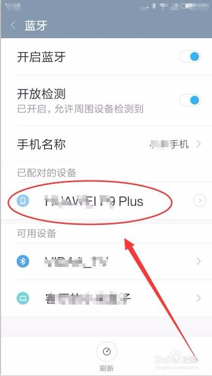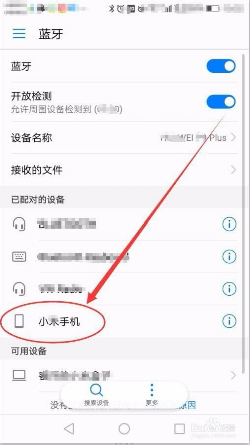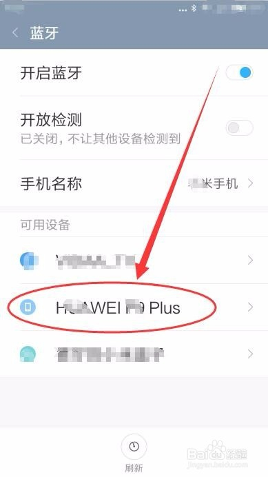 此中一只手机本例为华为手机,可以看到接入的另一只手机名称,本例为小米手机。