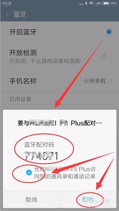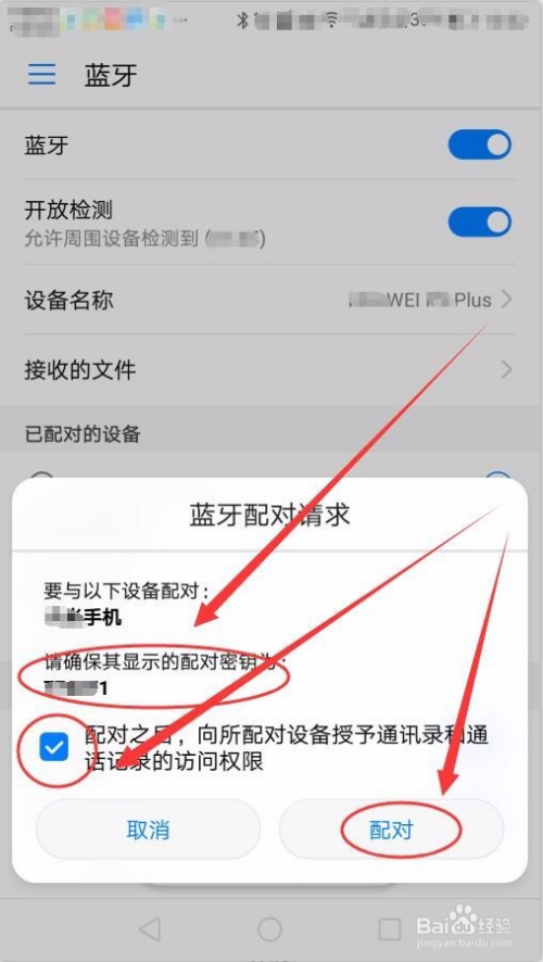 另一只手机的蓝牙界面中,会呈现配对请求,同样选择许可拜候,单击配对。