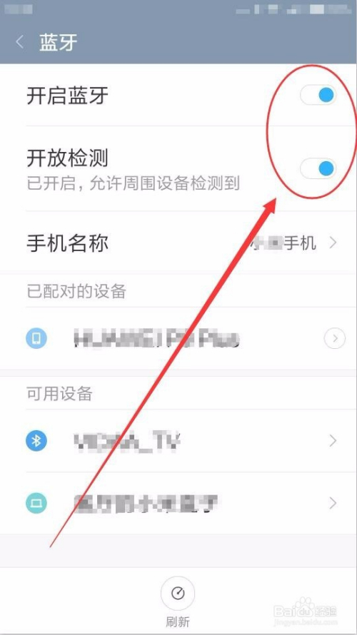 在需要毗连的另一只手机中,选择开启蓝牙功能。
