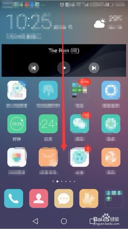 方式一:打开手机,在本家儿界面顶用手指从上往下拖动。