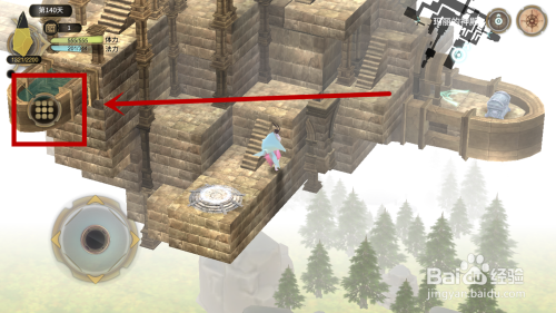 我们点击神殿台阶上的位置,点击处会呈现一个小圆圈,这时辰魔女就会主动走到圆圈处了。