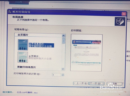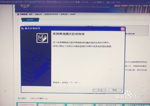 弹出照片打印标的目的导对话框,点击“下一步”。