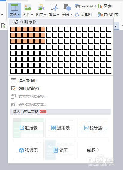 我们来点击表格按钮,如图,可以按照本身需要来选择几行几列;