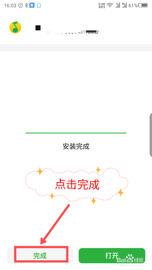 安装完当作后,会提醒你安装完当作,点击下面的完当作选项。