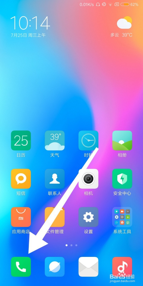 首先找到小米手机的“拨号”软件,点击进入。