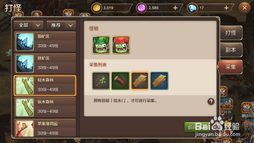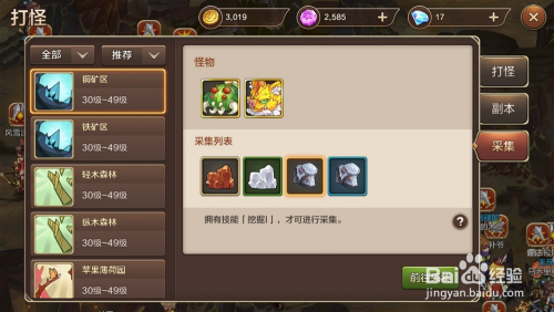 在游戏界面左侧找到并点击”打怪“按钮,在弹出的窗口中选择"采集"选项页,选摘要采集的资本,点击”前去采集“按钮即可前去采集地。