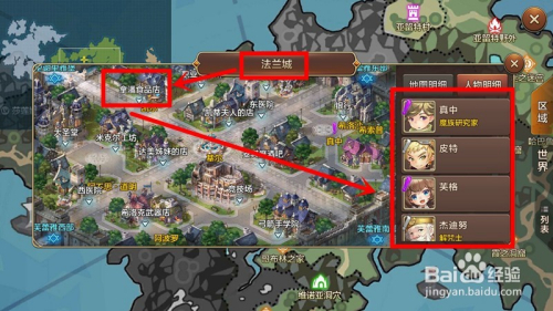 前面说了可以在“法兰城”的拿潘食物店里找到使命NPC,那如何快速传递曩昔呢。在非战斗场景,点击游戏界面左上角图标,打开宿世界地图,定位到要去的处所,点击后即可快速传递过来。