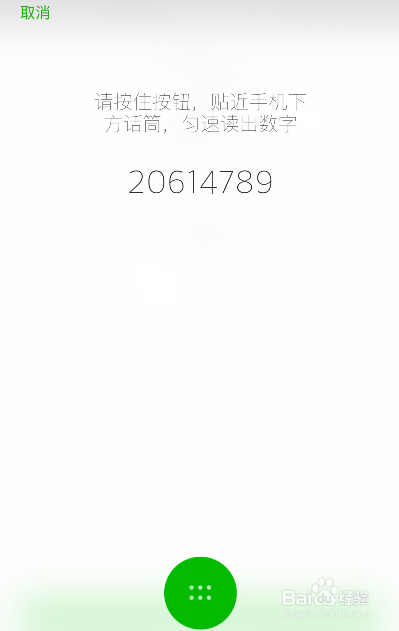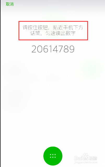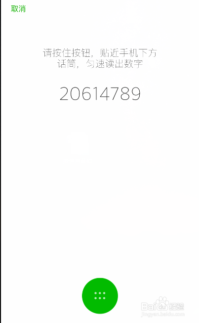 这时页面上会呈现一串数字,按住下方的绿色按钮,朗读那串数字。朗读时要接近手机下方的话筒,匀速读出数字,读完后松开按钮,点击进入【下一步】。然后我们需要再读一次那串数字,读完松开按钮后,就会提醒我们声音锁设置完当作了。