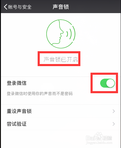 点击【帐号与平安】,进入后有个【声音锁】选项,若是没设置过的话,这里显示的是未设置。