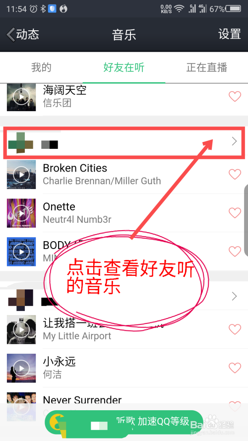 往下滑动屏幕,就能看到所有QQ老友听的音乐了。