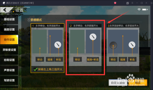 2、绝地求生游戏中的【操作设置】选择第二种操作模式;