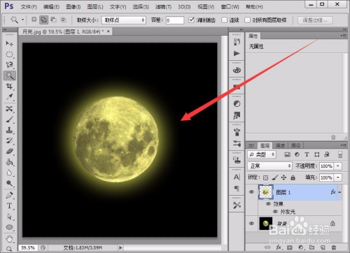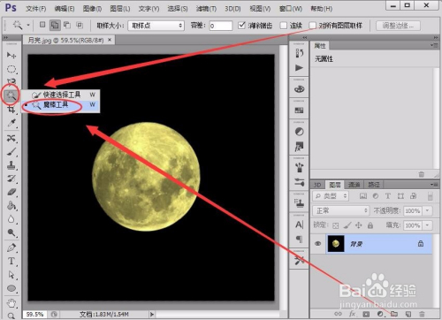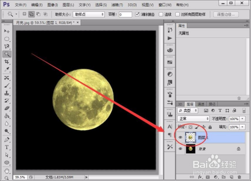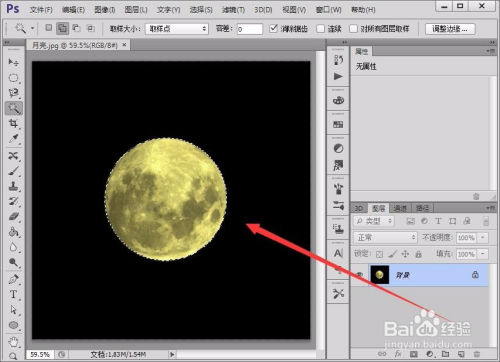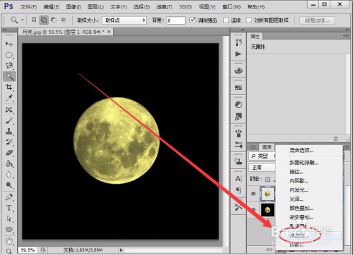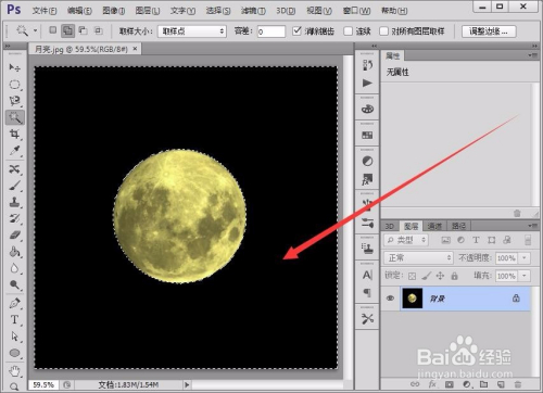 首先,在Photoshop软件中,打开一张月亮图片。