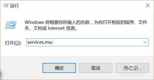 第一步按“win+R”键打开运行,在运行输入框中输入“services.msc”,如下图所示: