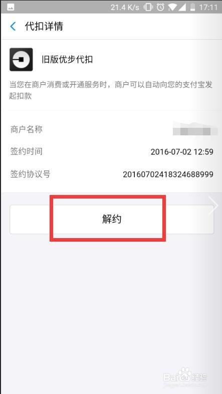 这里需要解约一个代扣办事,点击下面的解约按钮
