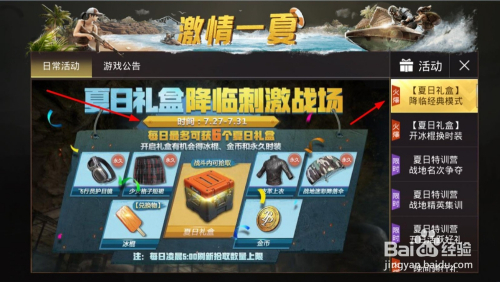 今天小编在玩绝地求生刺激战场的时辰,刚跳伞进入房间里的时辰有个叫夏季礼盒的名称盒子在地上,这应该是什么活动吧,这夏季礼盒有什么宝物在里面呢?小编怀揣着疑问竣事游戏之后,领会了一下活动法则,下面来告诉大师。