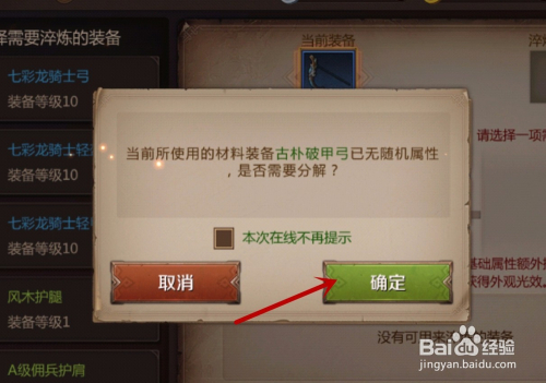 淬炼后还会弹出如图的提醒,我们直接点击【确定】即可,如图所示。