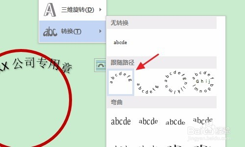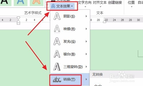 然后在快速东西栏点击“艺术字”,选择好今后在文档提醒处,输入我们需要的文字内容,接着点击"文本结果"-"转换",将适才的文字转换当作弯曲外形;