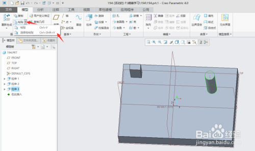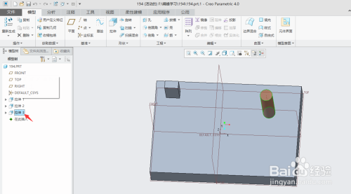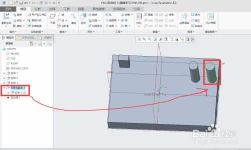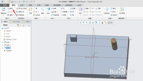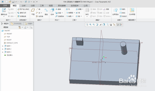打开creo4.0软件,打开文件"194.prt".(素材下载地址链接:https://pan.baidu.com/s/1tZ8fkYaikK9tN0GTtRvvHQ 密码:41i0)