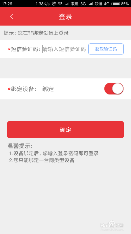 初度登岸需要短信验证并绑定手机,如图所示。