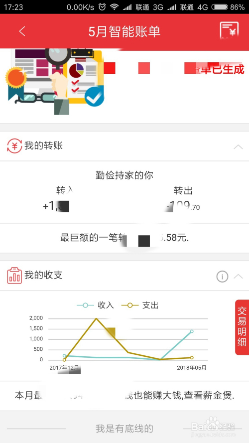 这里还可以查询余额的明细环境,点击账单或明细,这里可以看到我的智能账单信息,如图所示。