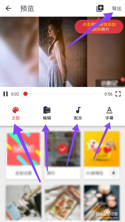 接着我们为电辅音乐相册选择本家儿题,配乐,字幕,等内容,选择完当作之后,点击右上角简直认按钮。