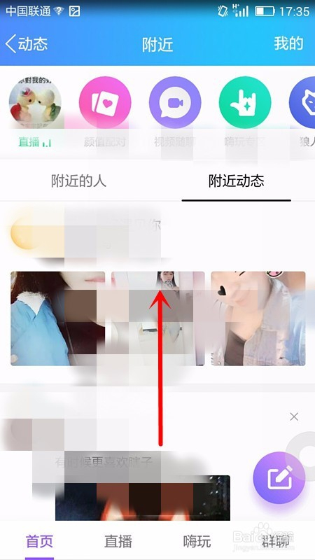 顿时,我们即可看到动态页面信息,我们点击选择页面中的四周板块;