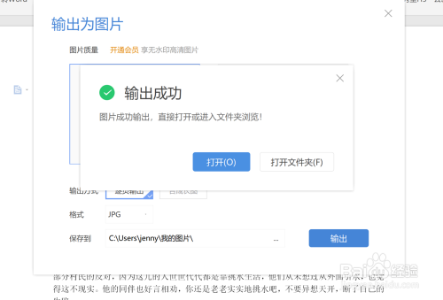 接下来就是要你做到点击新跳出的部门的左端,如图所示的“输出为图片”即可,按照此步调操作即可进行接下来的使命。
