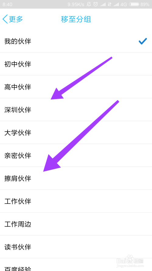 接着我们就可以看到本身之前所设置的所有分组了,选择把老友移到哪一个分组,点击选择即可。