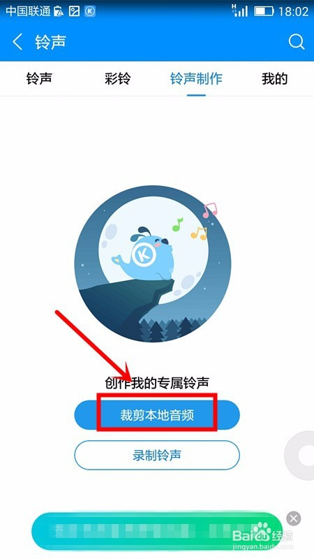 接着就会在手机上看到创作我的专属铃声,这时点击裁剪当地音频选项;