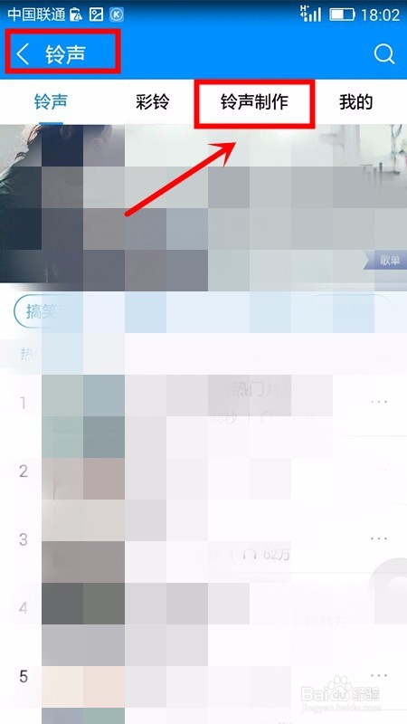 手机页面顿时就会显示铃声页面,选择该页面的铃声建造功能选项;