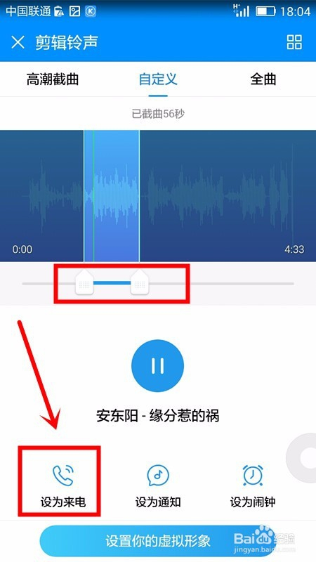 当我们截取好本身想要的部门歌曲后,我们想要设置该片段歌曲为来电铃声,我们就选择页面左下方的设为来电;