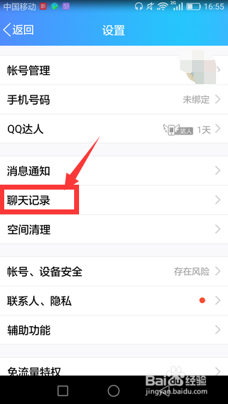 然后在设置栏中,选择此中的聊天记实设置,点击打开
