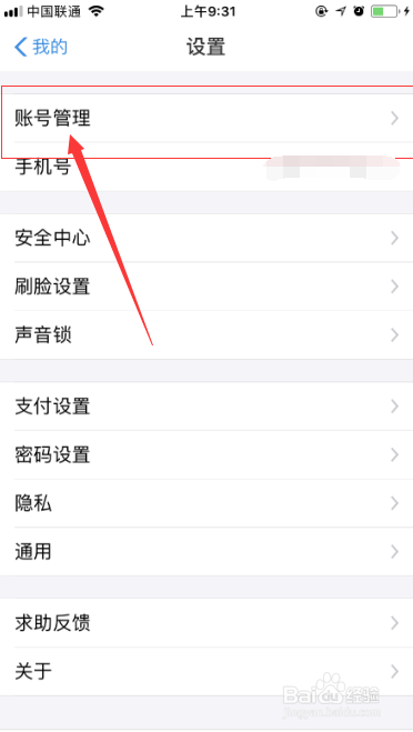 进入设置后,如下图,找到设置下方的账户办理而且点击进入。