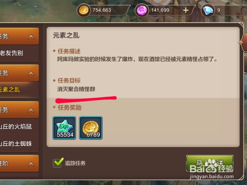 接着点击屏幕右上角的使命,在支线使命中可以看到元素之乱使命的介绍。