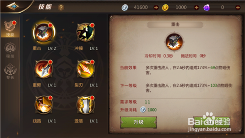 每个脚色都有本身的技术,技术是可以进级的,进级的越高,脚色的战斗力会晋升的越高。