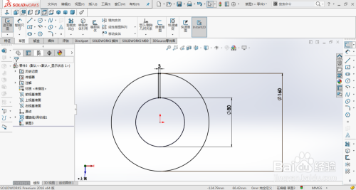 下一步,继续在上视基准面上建立草图。画一个年夜圆(160mm)和一个小圆(80mm)。
