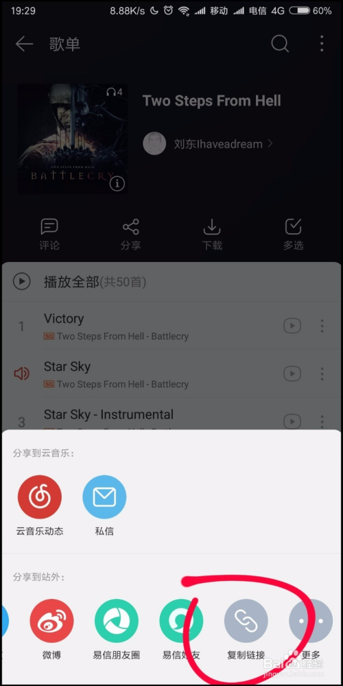 进入到网易云音乐的歌单之后,我们点击上方的分享图标,如下图所示。