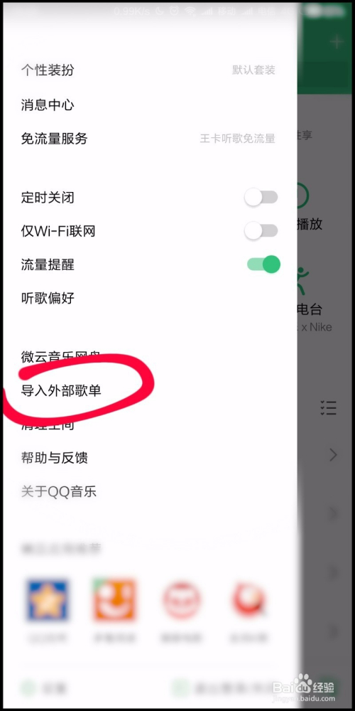 在打开的QQ音乐菜单中,我们点击打开导入外部歌单,如下图所示。
