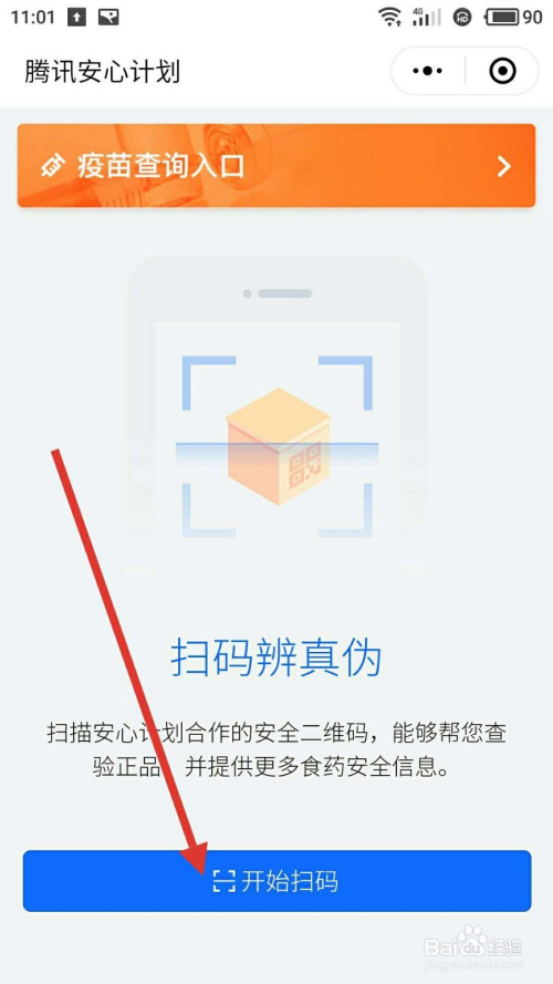 在疫苗查询页面中,若是你手上的疫苗产物有二维码标记的话,可以直接点击“扫码辨真伪”,进行扫码识别,如下图所示: