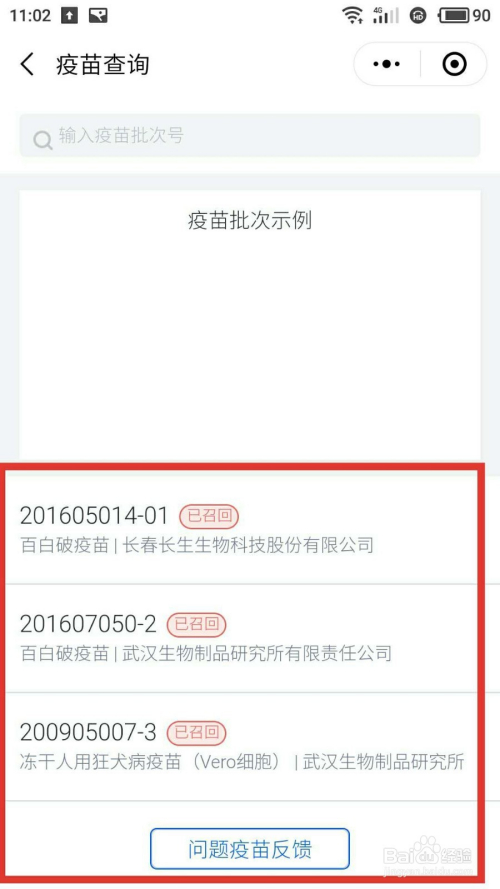 或者点击“疫苗查询进口”,查看呈现问题的批次疫苗,如下图所示: