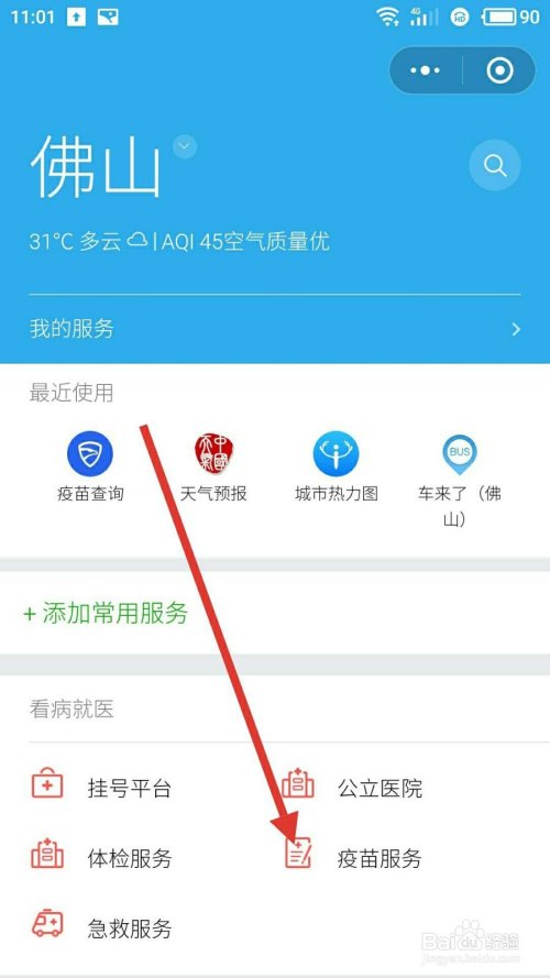 然后在看医就病中点击“疫苗办事”,如下图所示: